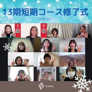様々なライフステージ、多様な価値観や経験を持つ仲間と、オンラインでつながり、お互いの気づきや着眼点を共有しながら進める学びは、一人では得られない視野の広がりと深い考察をもたらしてくれます。毎回のクラス参加を通じて得られる刺激や楽しさ、仲間と深める信頼関係、そして繰り返すことで着実に力がついていく実感は、スクール形式ならではの価値です。