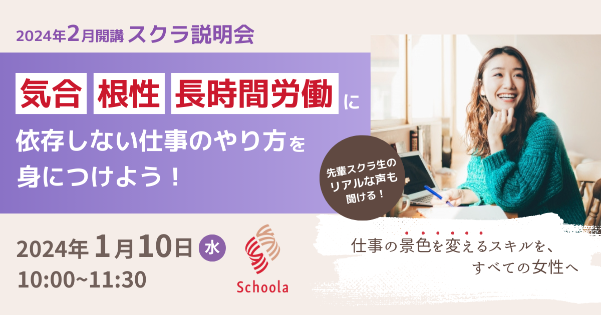 【スクラ説明会】仕事の景色を変えるスキルを、すべての女性へ ~”気合・根性・長時間労働”に依存しない仕事のやり方を身につけよう!~