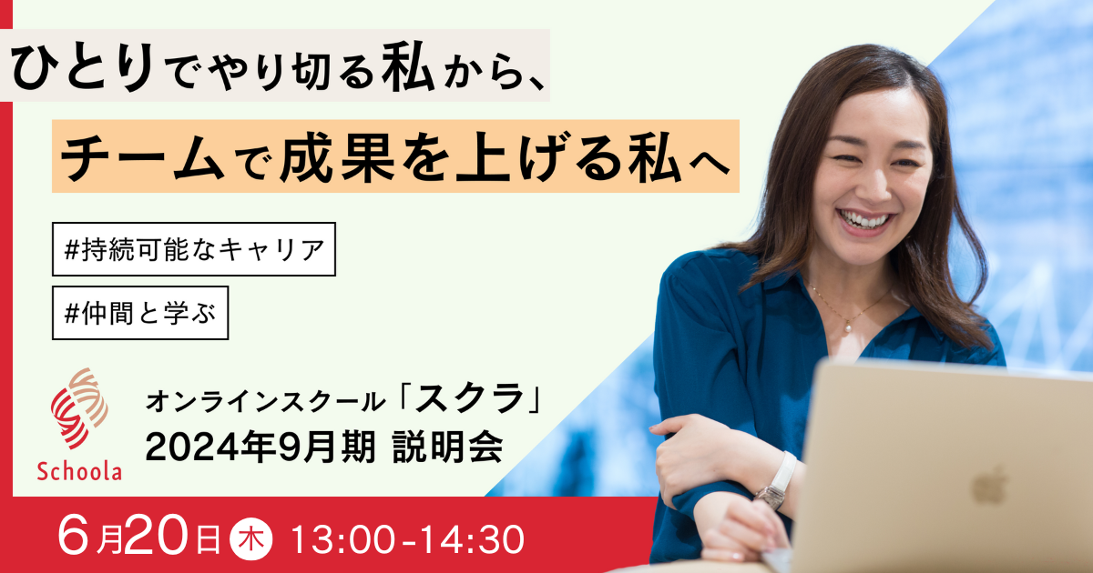 【スクラ 2024年9月開講 説明会】ひとりでやり切る私から、チームで成果を上げる私へ